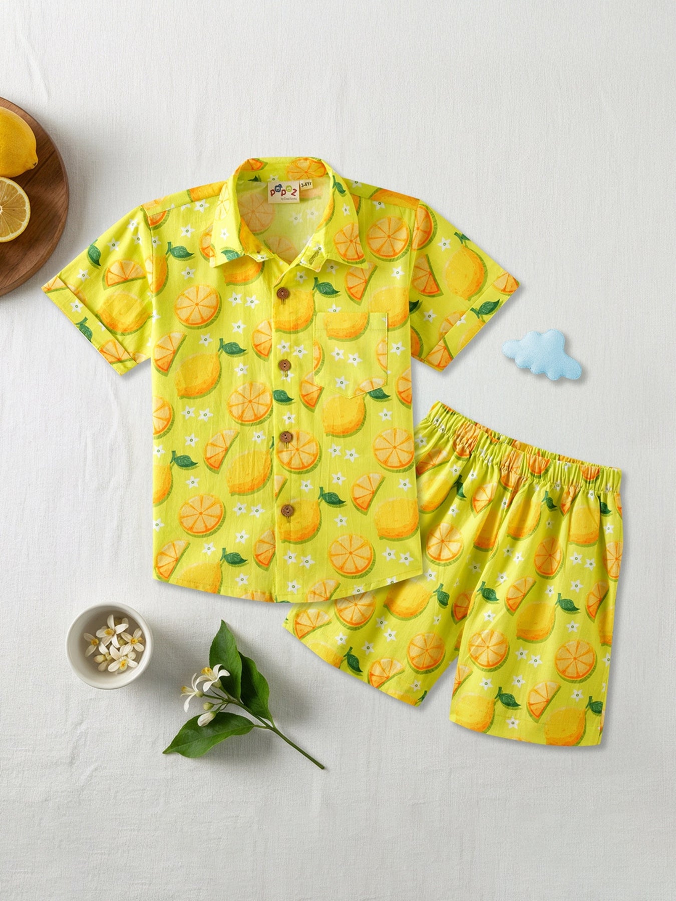 Fresh, cheerful, and full of summer vibes—this Lemon Zest Coord Set from Popoz by Desi Soota is designed to brighten your child’s wardrobe. Featuring lively lemon illustrations on a vibrant yellow base, this outfit feels as refreshing as a sunny day.