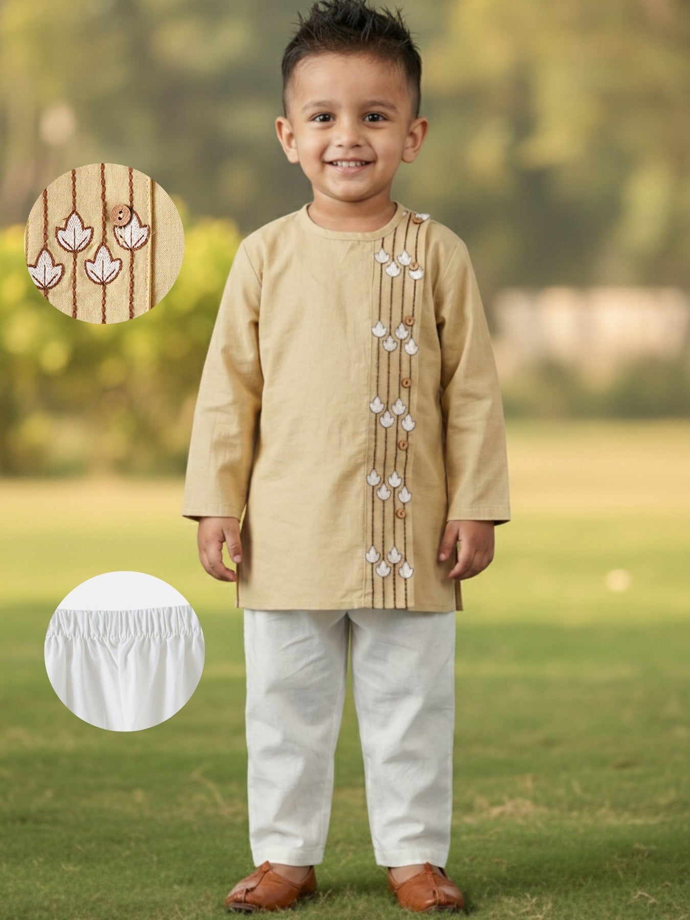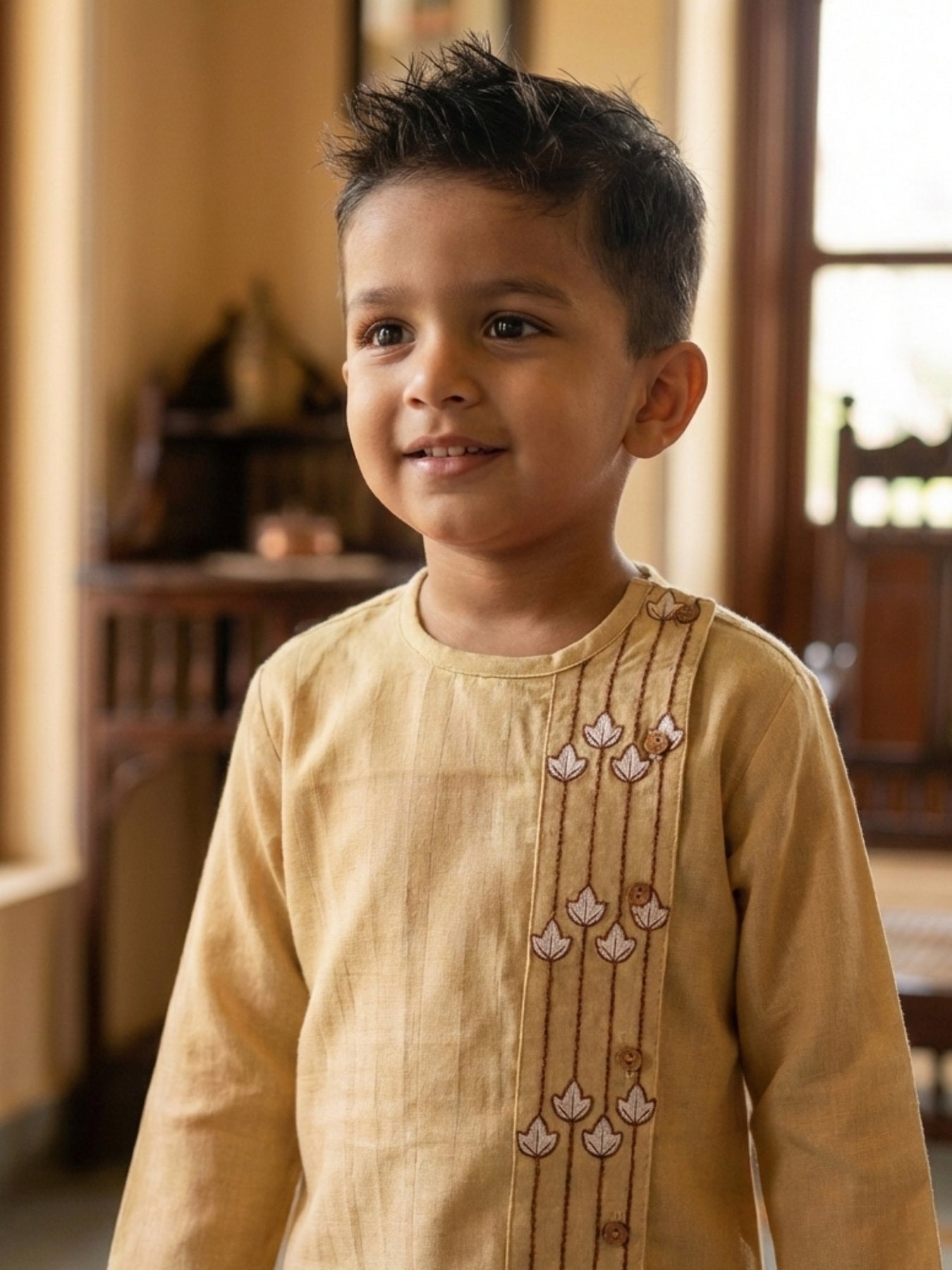 Introduce your child to the enchanting charm and unmatched comfort of our Kurta Pajama Set. At Popoz, we specialize in creating clothing that not only looks magical but also feels wonderful to wear. Crafted with reinforced seams and high-quality stitching, this set is designed to endure the daily adventures of childhood while keeping its elegant appearance.